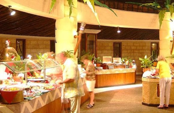 Deux restaurants et deux bars s’occuperont de combler vos estomacs. Le Karibu, le restaurant principal, accueille les clients pour les trois repas de la journée, sous forme de buffet. Les tables sont réparties sur plusieurs niveaux. L’espace est ouvert sur l’extérieur : pas de portes, ni de fenêtres. On trouve d’ailleurs la salle de spectacle juste à l’entrée de celui-ci. Le second restaurant de l’hôtel, le Marhaba, spécialisé dans les fruits de mer, est ouvert uniquement pour le dîner. Une vue imprenable sur l’océan Indien lui fait face. Le Tapa Tapa Bar est ouvert toute la journée de 10 h à 23 h. Il vous propose des rafraîchissements mais aussi un snack : salade, sandwichs… dans une ambiance musicale et conviviale. Enfin, le Jambo Bar dispose d’une carte similaire au Tapa Tapa mais avec un choix un peu plus large : pâtes, poissons, pizzas, etc.