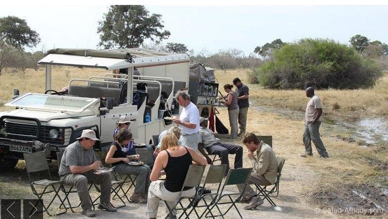 « Un programme safari avec nuits sur les étoiles tous les soirs, en camping organisé, par le guide et son assistant cuisinier, vous dormirez dans des tentes bien préparez par l’ équipe, des soirées au bord du feu. Vous pourrez observer les lions, guépards, crocodiles, éléphants, gazelles, girafes et tellement d’ autres, un vrai bivouac dans le delta, les réserves de Moremi, le parc de CHobe, un ballade en canoé, un voyage à votre rythme sans trop changement de campement, mais une vraie immersion totale dans la savane.
