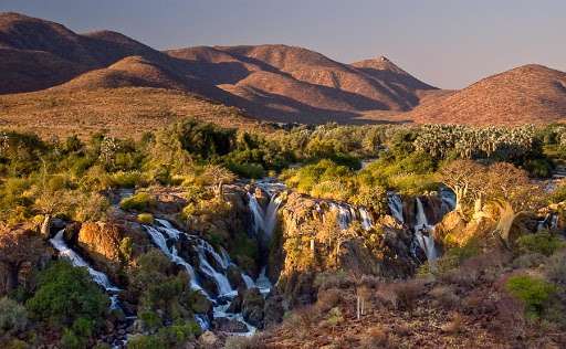 Une marche dans l’après-midi juste avant le coucher du soleil pour profiter du changement de couleur sur les Chutes d’Epupa.
