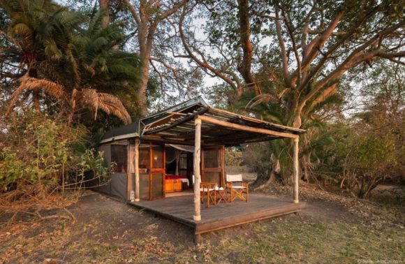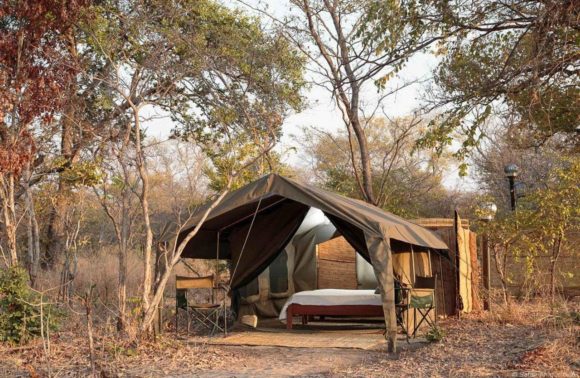 Avec seulement 3 tentes hexagonales spacieuses double/twin qui peuvent accueillir une famille de 4 personnes. Avec une belle terrasse à l’avant toutes les tentes sont bien isolées les unes des autres et sont orientées avec vue sur le fleuve. Toilettes privée à ciel ouvert avec système de toilettes sèches et douches à seau avec eau chaude. La salle à manger et le salon sont orientés de façon à avoir un regard sur le fleuve et sur la plaine à l’arrière qui attire les antilopes tels que pukus et impala.