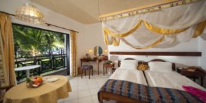 L’hôtel vous propose 170 chambres doubles ou familiales (avec un lit supplémentaire), confortables, spacieuses, avec balcon et climatisées. Elles disposent toutes d’un balcon avec vue sur le jardin tropical ou sur la mer. Les chambres sont équipées d’un grand lit, d’un dressing, d’un coin bureau, d’une salle de bain et sont toutes décorées harmonieusement.