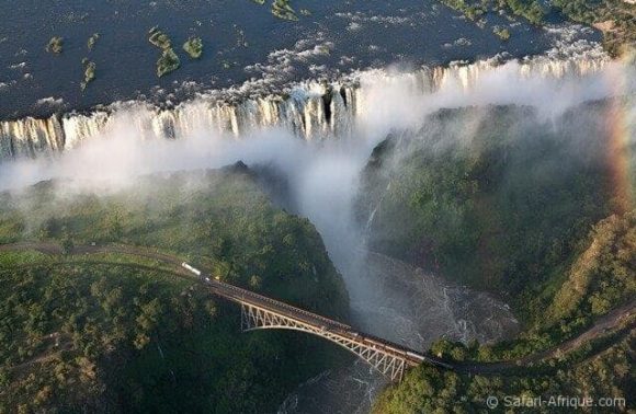 Qui ne connaît pas les chutes Victoria, baptisées ainsi par le célèbre David Livingstone, médecin et missionaire protestant écossais, en l’honneur de sa reine ? Pour les Makalolos, tribu locale, le nom de Victoria ne signifie rien. En effet, cette faille géologique de 1,7 km de long et 95 mètres de hauteur, merveille naturelle du monde, dans laquelle le majestueux fleuve Zambèze s’engouffre dans un grondement terrible et d’où les embruns s’élèvent très haut dans le ciel, leur inspira un nom bien plus approprié: «Mosi-oa-Tunya», la fumée qui gronde…