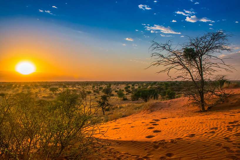 Après le petit déjeuner, Direction le sud et les contreforts du Kalahari où vous passerez la nuit dans un campement. Mini-dunes, et déjà les premiers animaux sauvages (autruches, oryx… et peut-être des suricates, c’est leur région).