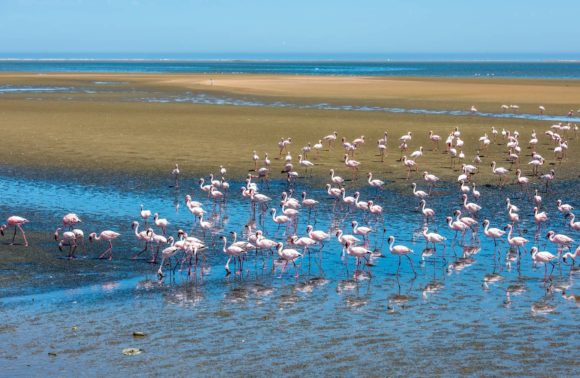 Départ matinal en direction de Walvis Bay, principal port de Namibie. Une excursion en bateau sur la lagune vous conduit à la recherche des dauphins et des otaries. Après-midi libre pour faire des achats ou des activités en supplément.