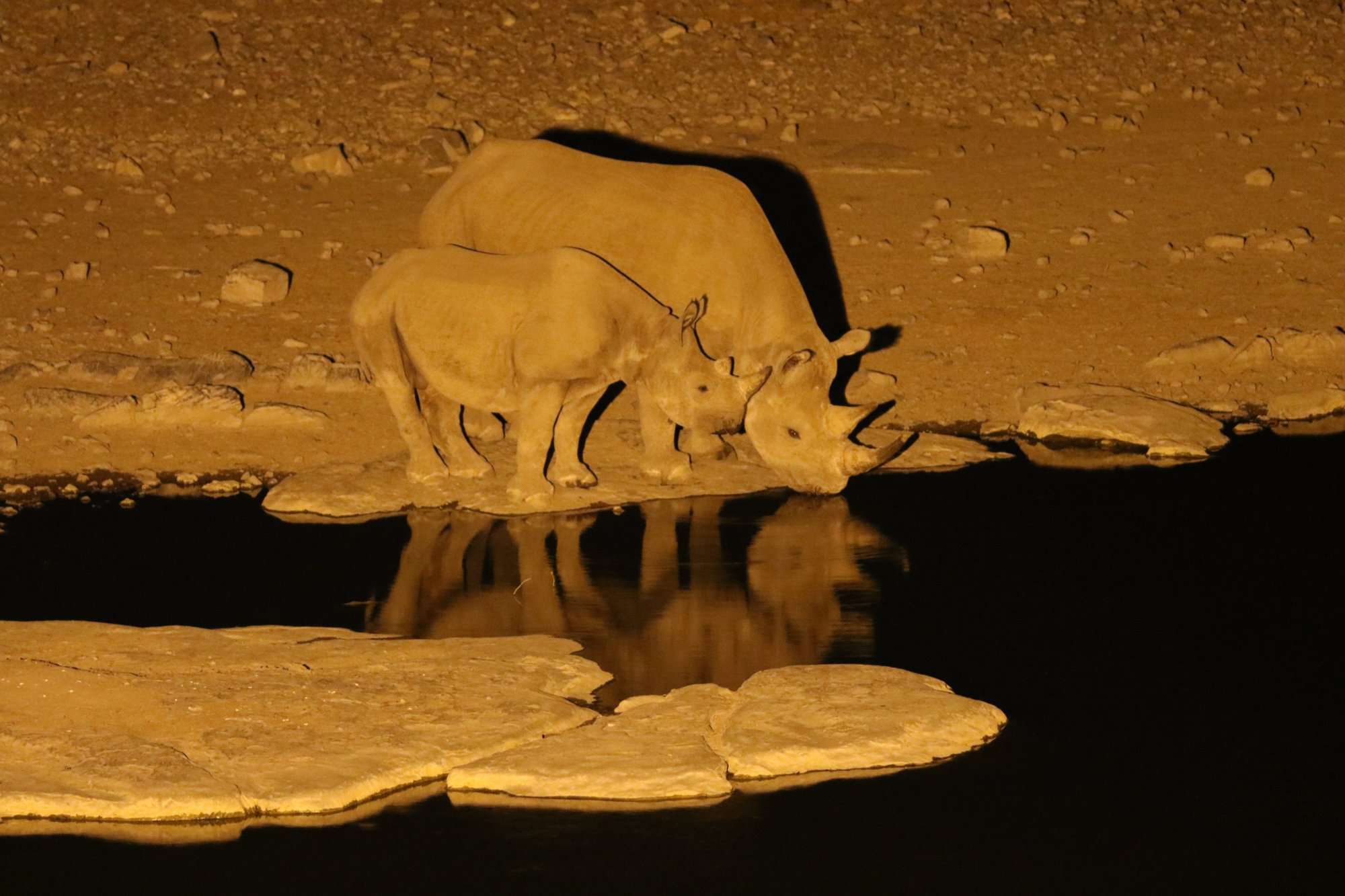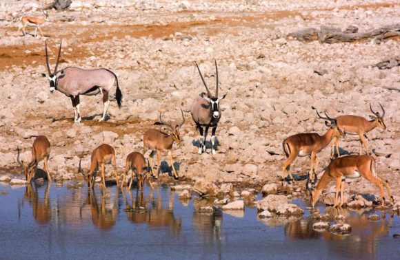 Belle journée de safari presque exclusive, car bien peu de touristes empruntent cette voie. Direction Okaukuejo à peine distant de 170 km. Tout en faisant un « game drive » avec arrêt obligatoire à tous les points d’eau afin d’observer la faune richissime. Déjeuner. Logement au camping, à deux pas du point d’eau éclairé toute la nuit (il est très intéressant de s’y rendre dans la nuit et en soirée).