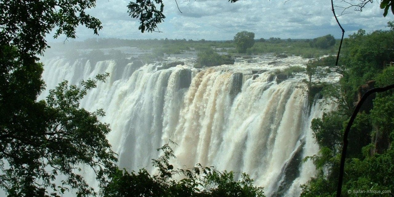 « Un programme avec le parc de KAFUE pour aller vers les CHUTES de VICTORIA FALLS coté ZAMBIE. Avec toutes ces activités, la marche à pied avec guide, vos balades en canoé sur le fleuve, enfin toutes ces diversités qui font que votre safari ne peut pas être inoubliable. C’est aux Chutes Victoria que la terre se divise et engloutit une des plus belles rivières d’Afrique : le Zambèze. Lorsque l’eau heurte les profondeurs, un nuage de brume s’élance vers le ciel, qui se voit jusqu’à plus de 30 km à la ronde, donnant aux chutes leur nom local « Mosi Oa Tunya » (la fumée qui gronde). »