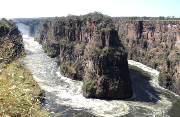 Qui ne connaît pas les chutes de Victoria, baptisées ainsi par Livingstone en l’honneur de la reine. Pour les Makalolos, tribu locale, le nom de Victoria ne signifie rien. Cette faille de 1.7 km de long et de 95 mètres de hauteur, merveille naturelle de ce monde, dont la vapeur s’élève dans le ciel leur inspira un patronyme bien plus approprié: «Mosi-oa-Tunya» (la fumée qui gronde).