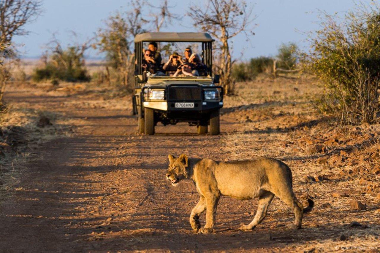 Déjeuner au lodge et deuxième activité de la journée qui se terminera au coucher du soleil. Vous pourrez admirer le coucher du soleil sur le parc un moment inoubliable !