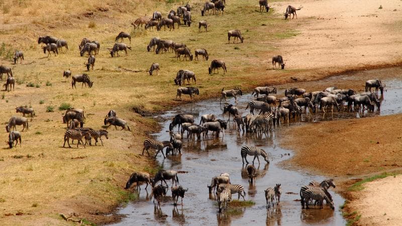 Après le petit déjeuner, départ en safari pour toute la journée. Déjeuner pique-nique dans le parc. Après le déjeuner, poursuite du safari en espérant y observer le magnifique spectacle de la migration. A toute époque la faune y est exceptionnelle mais chaque année entre le mois d’octobre et le mois de juillet, des milliers de gnous et de zèbres nous y offrent l’incroyable spectacle de la grande migration. Cette large population d’herbivores y attire les prédateurs. On peut y observer une large gamme d’herbivores : gnous, zèbres, girafe Masai, antilope dont le dik, les impalas, les gazelles de Thompson, des hippopotames des éléphants, ons et buffles et avec un peu de chance des rhinocéros et des léopards qui complètent le big-five.