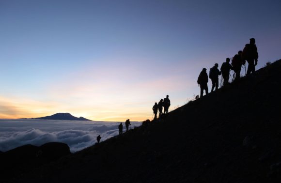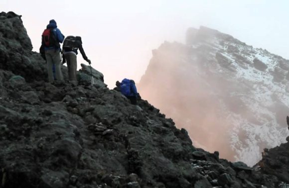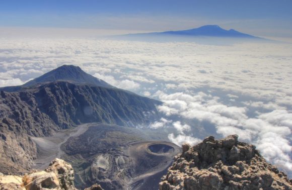 Le départ sera très matinal. Vous partirez du refuge à 02h00 du matin pour atteindre le Point RHINO à 3800m. Le sentier que vous emprunterez passera entre des crêtes de cendres et de rochers pour atteindre à l’aube le point COBRA situé à 4350m. La vue est sensationnelle entre les falaises au bord du cratère, la cendre au centre du cratère, le Kilimandjaro flottant entre les nuages matinaux et la Rift Valley, vous ne saurez plus où regarder. Le sommet du Pak Socialist ( 4566m) est à une heure de plus mais le sentier est souvent abrupt. Le retour au Point Rh