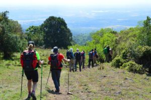 Départ en fin de matinée de MOMELLA ( situé à 1500m d’altitude). Ce trek vous fera passer dans de grandes et larges prairies et vous permettra d’apprécier la vue sur quelques réserves aux alentours. Vous pourrez observer des bisons, phacochères ainsi que des éléphants tout au long de votre parcours. Vous aurez la possibilité de déjeuner au célèbre Fig Tree. Après le déjeuner le trek continuera à travers des forêts moins denses, où vous pourrez contempler un grand nombre d’oiseaux et de singes tels que le singe colobus noir et blanc. En milieu d’après-midi vous pourrez appréciez la vue sur d’imposantes falaises ainsi que le fabuleux centre de cratère rempli de cendres volcaniques. MIRIAKAMBA HUT est situé à 2514m d’altitude dans une belle et grande prairie. Vous y arriverez à temps pour pouvoir profiter tout le reste de l’après-midi du soleil et de la magnifique vue surplombant les plaines du Kilimandjaro. Cette journée de marche aura duré 4 à 6h pour une ascension de 1014m.